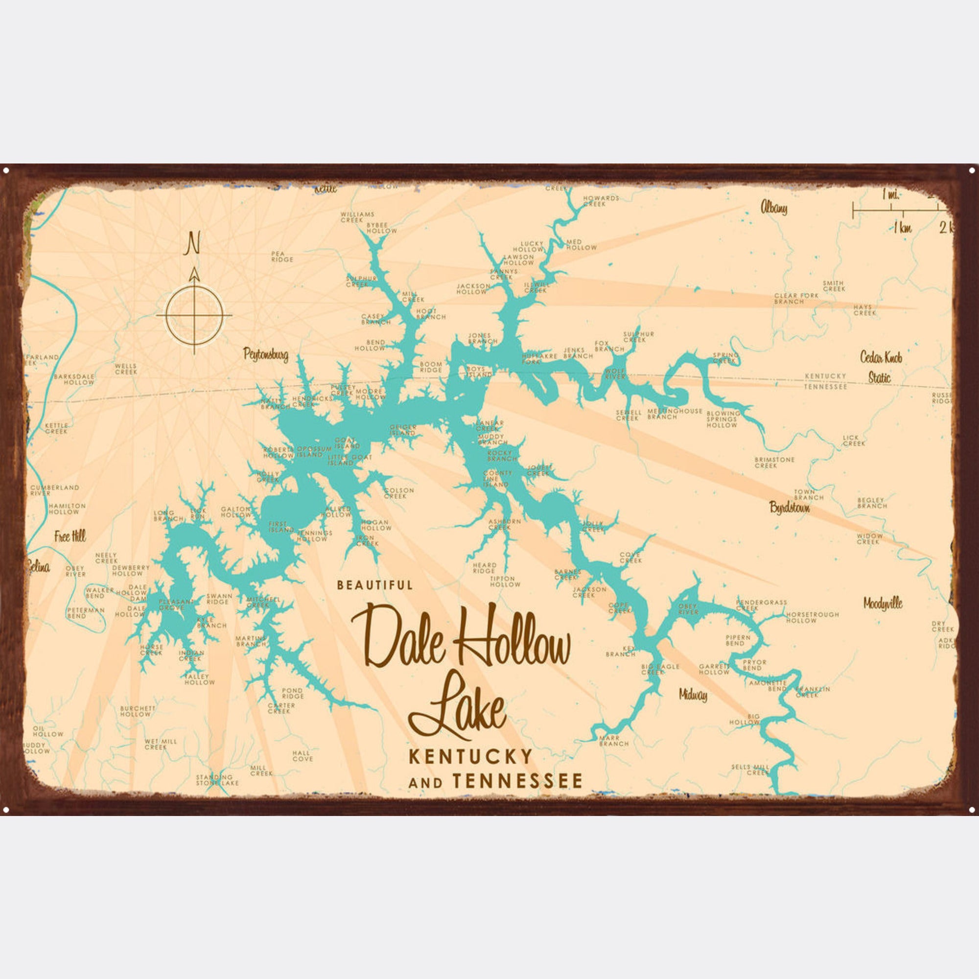 Dale Hollow Lake Kentucky Tennessee, Rustic Metal Sign Map Art