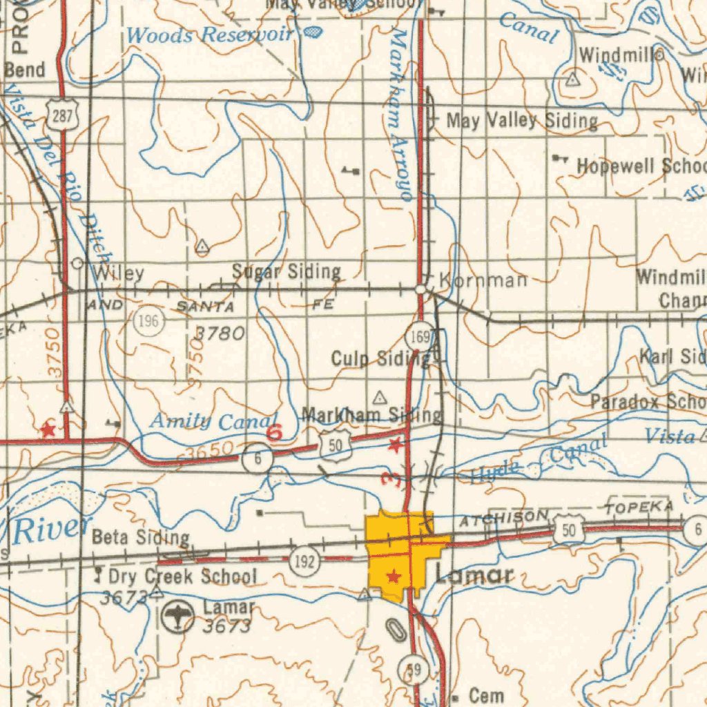 Lamar, CO KS (1958, 250000 Scale) Map by United States Geological